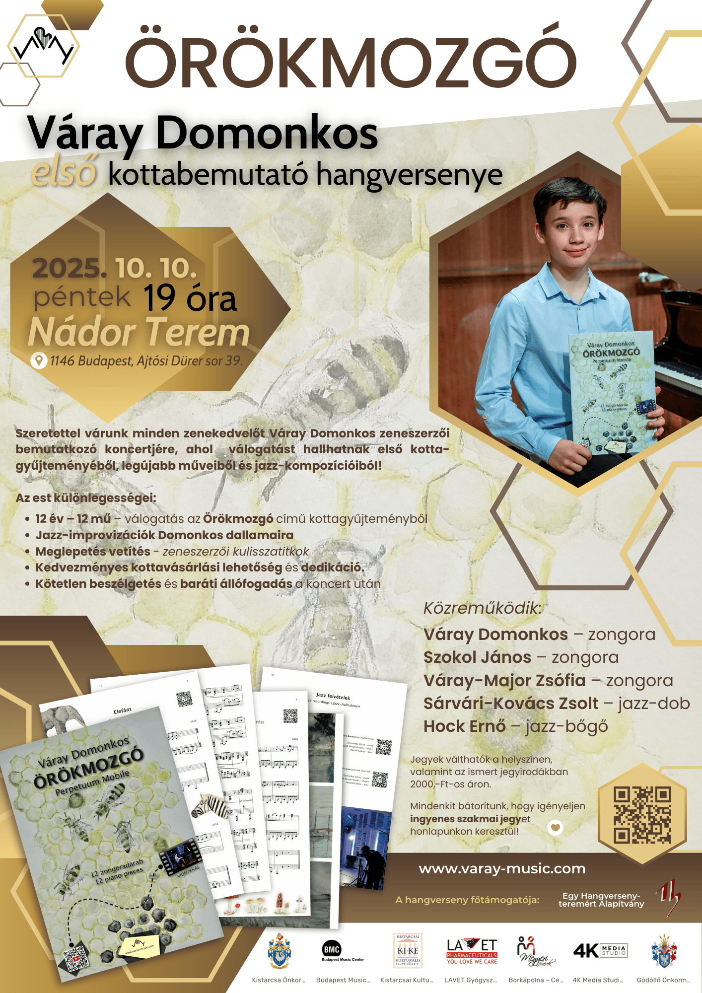 A tizenkét éves Váray Domonkos Örökmozgó c. kötete nem mindennapi zenei kalandra hívja az érdeklődőket: